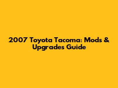 2007 Toyota Tacoma: Mods & Upgrades Guide