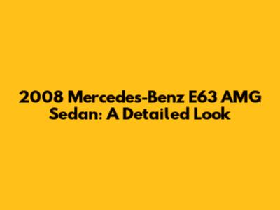 The 2008 Mercedes-Benz E63 AMG Sedan is a remarkable car that offers a unique blend of performance, luxury, and style. Its powerful V8 engine, refined interior, and aggressive styling make it a desirable car for enthusiasts. While it may require more maintenance than a standard sedan, the driving experience is well worth the cost for those who appreciate high-performance vehicles. If you're looking for a car that can deliver both thrills and comfort, the 2008 E63 AMG is definitely worth considering. It's a true icon of its era, and its appeal is likely to endure for years to come. This car isn’t just transportation; it’s an experience. Remember to always prioritize maintenance and enjoy the ride!