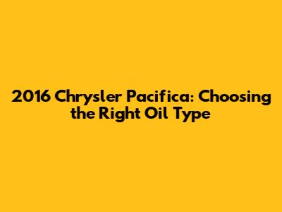 2016 Chrysler Pacifica: Choosing The Right Oil Type