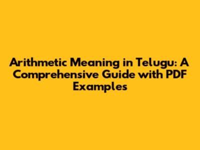 Arithmetic Meaning In Telugu: PDF Guide & Examples