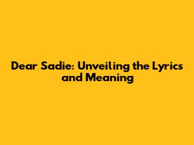 Dear Sadie: Unveiling The Lyrics And Meaning