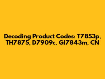 Ever stumbled upon a seemingly random string of letters and numbers on a product and wondered what it all means? Well, you're not alone! Product codes like T7853p, TH7875, D7909c, GI7843m, and CN might look like gibberish at first glance, but they actually hold valuable information about the product, its origin, and even its manufacturing process. Let's dive into the world of product codes and try to decode these mysterious strings. Understanding these codes can help you make informed purchasing decisions, track products, and even troubleshoot issues. So, buckle up, guys, and let's unravel the secrets hidden within these alphanumeric puzzles! We will explore the general structure of product codes, common types of codes, and how to interpret them. Whether you're a seasoned shopper or just curious about the world of product identification, this guide will provide you with the knowledge and tools to decipher product codes like a pro. Let's start by discussing the general structure of product codes and the information they typically convey.