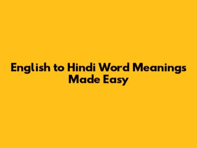 English To Hindi Word Meanings Made Easy