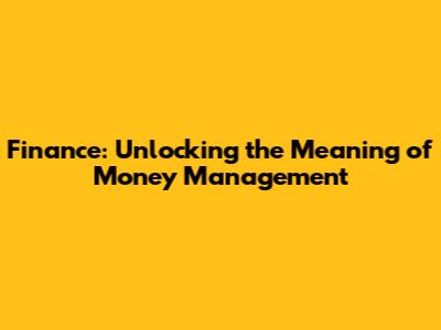 Finance: Unlocking The Meaning Of Money Management