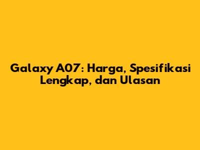 Galaxy A07: Harga, Spesifikasi Lengkap, Dan Ulasan
