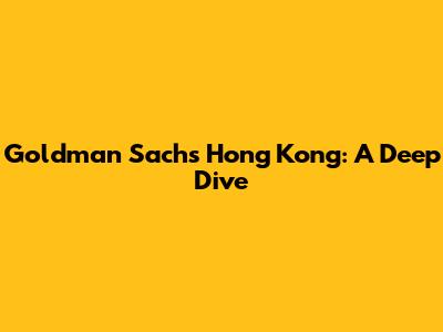 Goldman Sachs Hong Kong: A Deep Dive