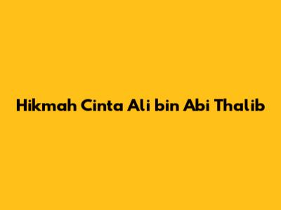 Hikmah Cinta Ali Bin Abi Thalib