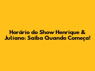 Horário Do Show Henrique & Juliano: Saiba Quando Começa!