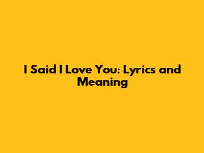 I Said I Love You: Lyrics And Meaning