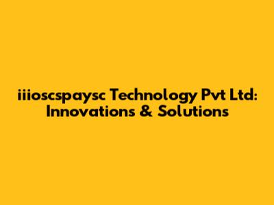 Iiioscspaysc Technology Pvt Ltd: Innovations & Solutions