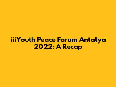Hey everyone! Let's dive into the iiiYouth Peace Forum Antalya 2022, a fantastic gathering that brought together young minds from all over the globe to chat about peace, understanding, and making the world a better place. This event was a blast and packed with insightful discussions, collaborative workshops, and opportunities to connect with like-minded individuals. If you weren't there, no worries – I'm here to give you the lowdown on everything that went down. The forum aimed to provide a platform for young people to express their views, share their experiences, and develop strategies for promoting peace and resolving conflicts in their communities and beyond. So, buckle up, because we're about to explore the key highlights, discussions, and outcomes of this amazing event! Let's get into the nitty-gritty of the iiiYouth Peace Forum Antalya 2022. The forum featured a diverse range of participants, including youth leaders, activists, educators, and students from various countries and backgrounds. This diversity enriched the discussions and ensured that a wide range of perspectives were considered. The agenda of the forum was carefully crafted to address the most pressing issues related to peace and security, such as conflict resolution, human rights, sustainable development, and intercultural dialogue. These topics were explored through various formats, including keynote speeches, panel discussions, workshops, and cultural performances. One of the main goals of the forum was to empower young people to become active agents of peace. To this end, the forum provided participants with the knowledge, skills, and tools they needed to address conflicts peacefully and promote positive change in their communities. This included training in conflict resolution, negotiation, and mediation, as well as opportunities to develop leadership skills and build networks. Throughout the forum, participants had the chance to engage in collaborative projects and initiatives aimed at promoting peace and fostering understanding. They worked together to develop innovative solutions to complex challenges and identify practical steps that could be taken to create a more peaceful and just world. So, whether you are a peace enthusiast or someone who's just curious about making a difference, this recap is for you!