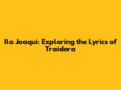 Ila Joaqui: Exploring The Lyrics Of 'Traidora'