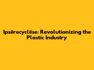 Ipsērecyclēse: Revolutionizing The Plastic Industry