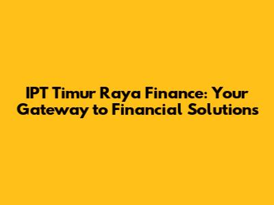 IPT Timur Raya Finance: Your Guide To Financial Solutions