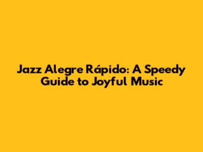 Jazz Alegre Rápido: A Speedy Guide To Joyful Music