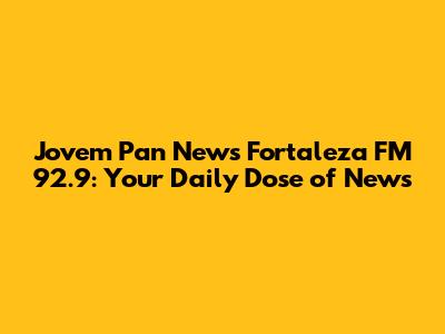 Jovem Pan News Fortaleza FM 92.9: Your Daily Dose Of News