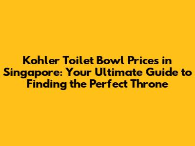 Kohler Toilet Prices In Singapore: Your Complete Guide