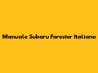 Manuale Subaru Forester: Italian Edition