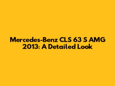 Hey, car enthusiasts! Today, we’re diving deep into the Mercedes-Benz CLS 63 S AMG 2013. This car isn't just a mode of transportation; it's a statement. It combines luxury with raw power, making it a standout in its class. If you're considering getting one or just want to know what makes it so special, you’re in the right place. Let’s get started and explore everything this beast has to offer.