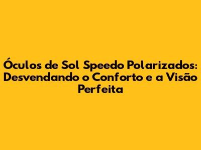 Óculos De Sol Speedo Polarizados: Guia Completo