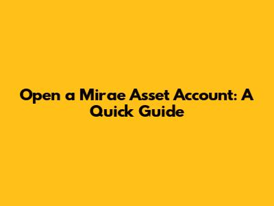 Open A Mirae Asset Account: A Quick Guide