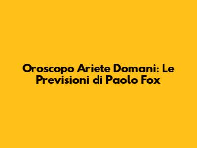 Hey Ariete, pronti a sbirciare cosa riservano le stelle per voi domani? Se siete curiosi di sapere cosa vi aspetta secondo il celebre oroscopo Ariete domani Paolo Fox, siete nel posto giusto! Paolo Fox, con la sua inconfondibile capacità di interpretare i moti celesti, ci offre uno sguardo privilegiato sul futuro, aiutandoci a navigare le giornate con maggiore consapevolezza e, perché no, anche con un pizzico di divertimento in più. Questo articolo è pensato proprio per voi, cari Ariete, che siete sempre alla ricerca di quel quid in più per affrontare la giornata con la giusta carica. Non importa se siete scettici o super appassionati, le stelle parlano a tutti noi, e ascoltarle può essere sorprendentemente utile. Quindi, mettiti comodo, prenditi una pausa e scopriamo insieme cosa il domani ha in serbo per il tuo segno, con le preziose indicazioni del nostro astrologo di fiducia.