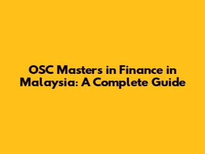 OSC Masters In Finance In Malaysia: A Complete Guide