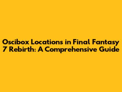 Hey guys! If you're diving into the awesome world of Final Fantasy 7 Rebirth, you've probably stumbled upon these cool little contraptions called Osciboxes. They're not just for show; these boxes are crucial for progressing through certain parts of the game and snagging some sweet rewards. But finding them can be a bit of a puzzle, right? No worries, because this guide is here to help you locate all those sneaky Osciboxes scattered throughout the game. We'll break down where to find them, how to solve their puzzles, and what goodies you'll get for your efforts. Let's get started and become Oscibox masters!