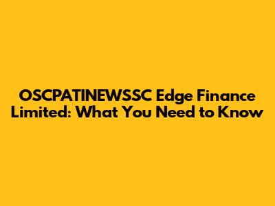 OSCPATINEWSSC Edge Finance Limited: What You Need To Know
