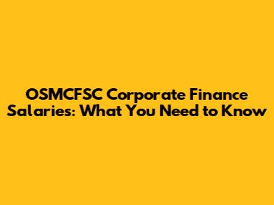 OSMCFSC Corporate Finance Salaries: What You Need To Know