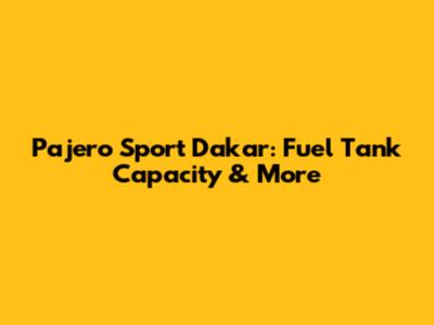 Pajero Sport Dakar: Fuel Tank Capacity & More