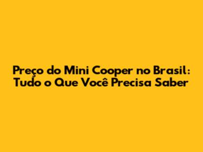 Preço Do Mini Cooper No Brasil: Guia Completo E Atualizado
