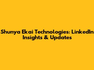 Shunya Ekai Technologies: LinkedIn Insights & Updates