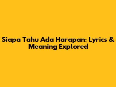 Siapa Tahu Ada Harapan: Lyrics & Meaning Explored