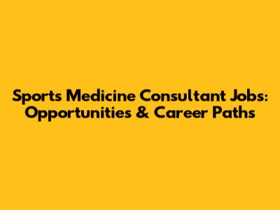 Sports Medicine Consultant Jobs: Opportunities & Career Paths