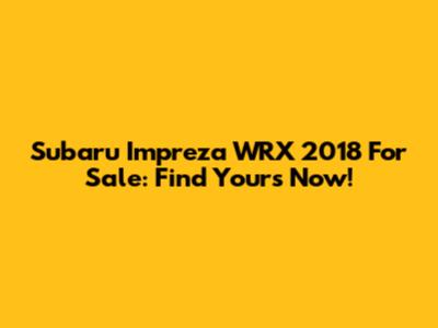 Subaru Impreza WRX 2018 For Sale: Find Yours Now!