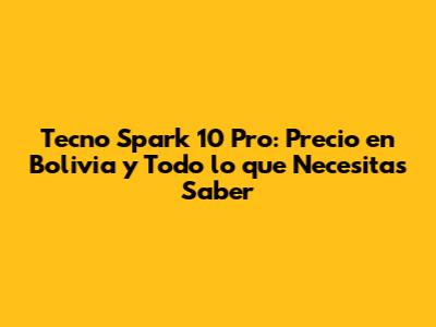Tecno Spark 10 Pro: Precio Y Análisis En Bolivia