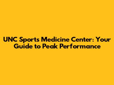 UNC Sports Medicine: Your Guide To Peak Performance