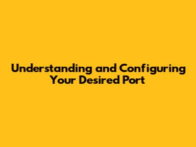 Understanding And Configuring Your Desired Port