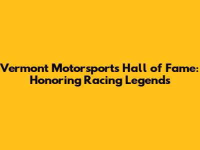Vermont Motorsports Hall Of Fame: Honoring Racing Legends