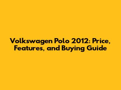 Volkswagen Polo 2012: Price, Features, And Buying Guide