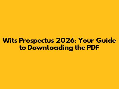 Wits Prospectus 2026: Your Guide To Downloading The PDF