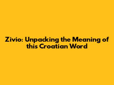 Zivio: Unpacking The Meaning Of This Croatian Word